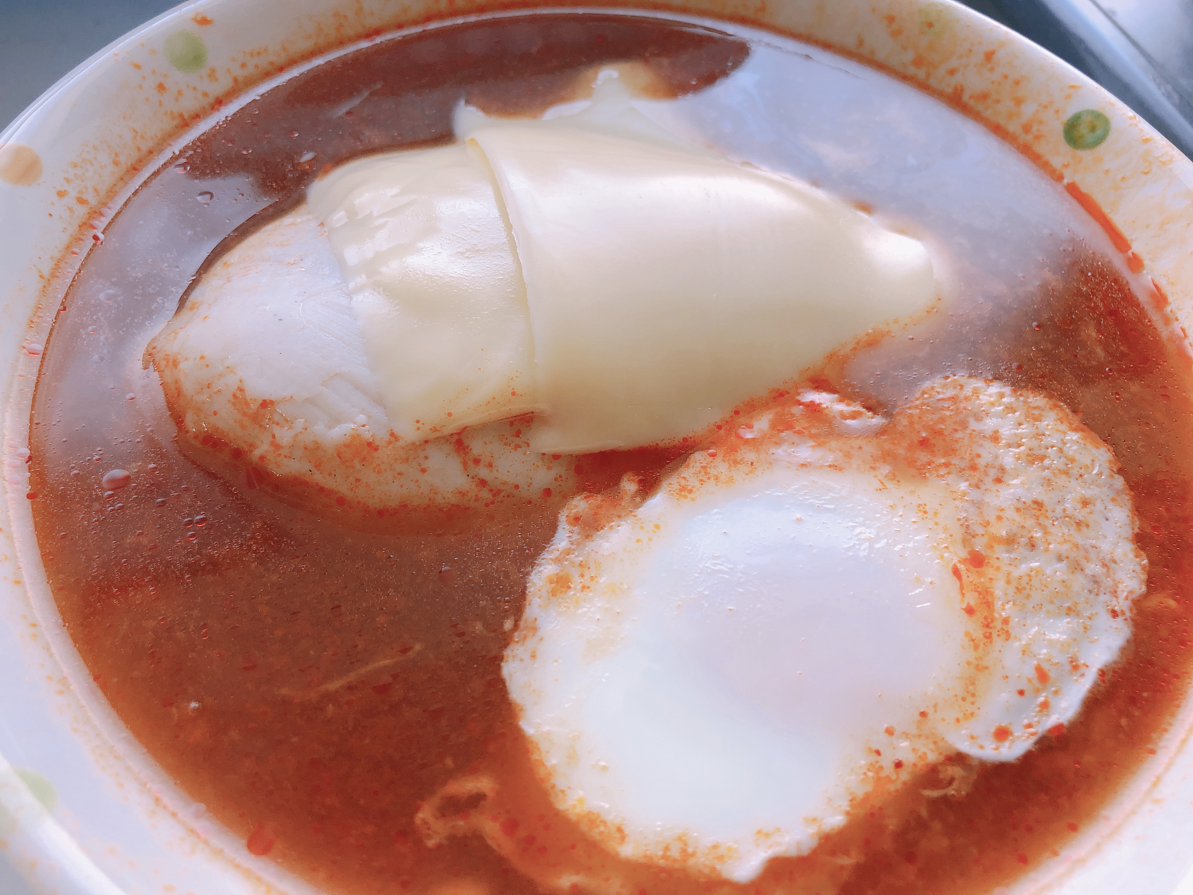 ちょっと味を変えたいと思って、チーズダッカルビスープを使ってみました。これ非常に便利で、サラダチキンとチーズをスープに入れて、一緒にレンジでチンすれば出来上がり!というものです。