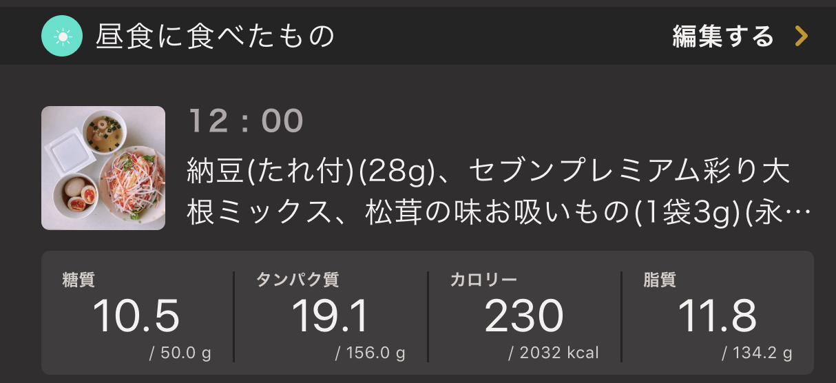 間食ナイスだそうです!昼食にタンパク質として煮玉子と納豆のみだったので、確かに肉か魚あったほうが良かったかも。