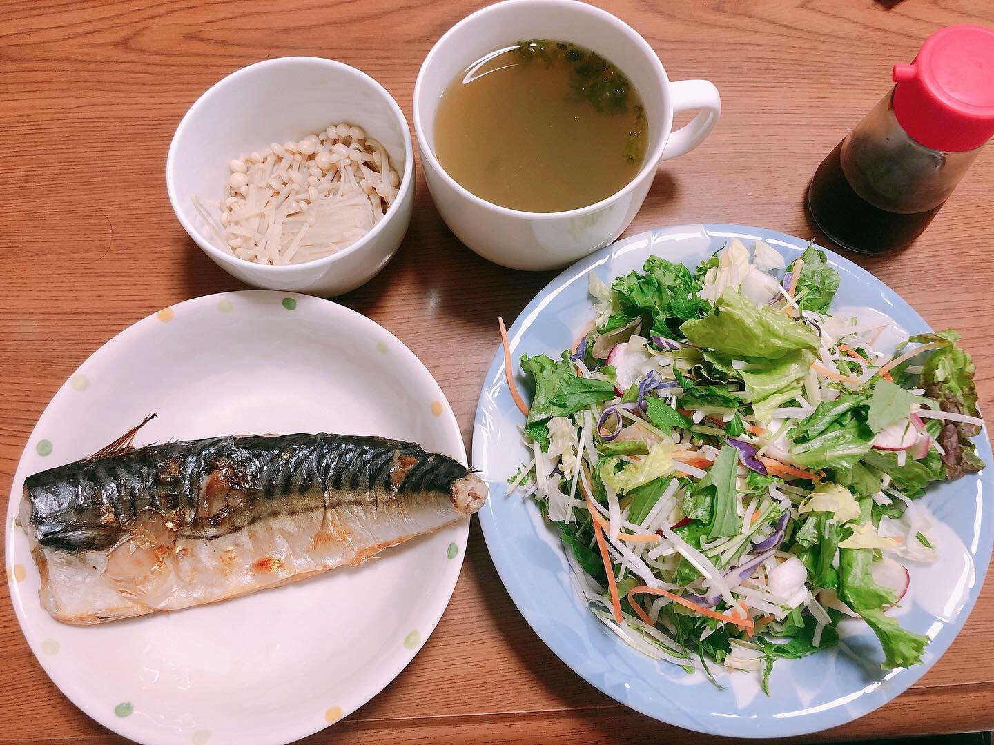鶏肉や卵などが最近続いていたので、どうしても魚が食べたくなって塩サバを2匹買ってきました。夕食に食べるのは1匹分のみ。残りは明日の朝ですね。