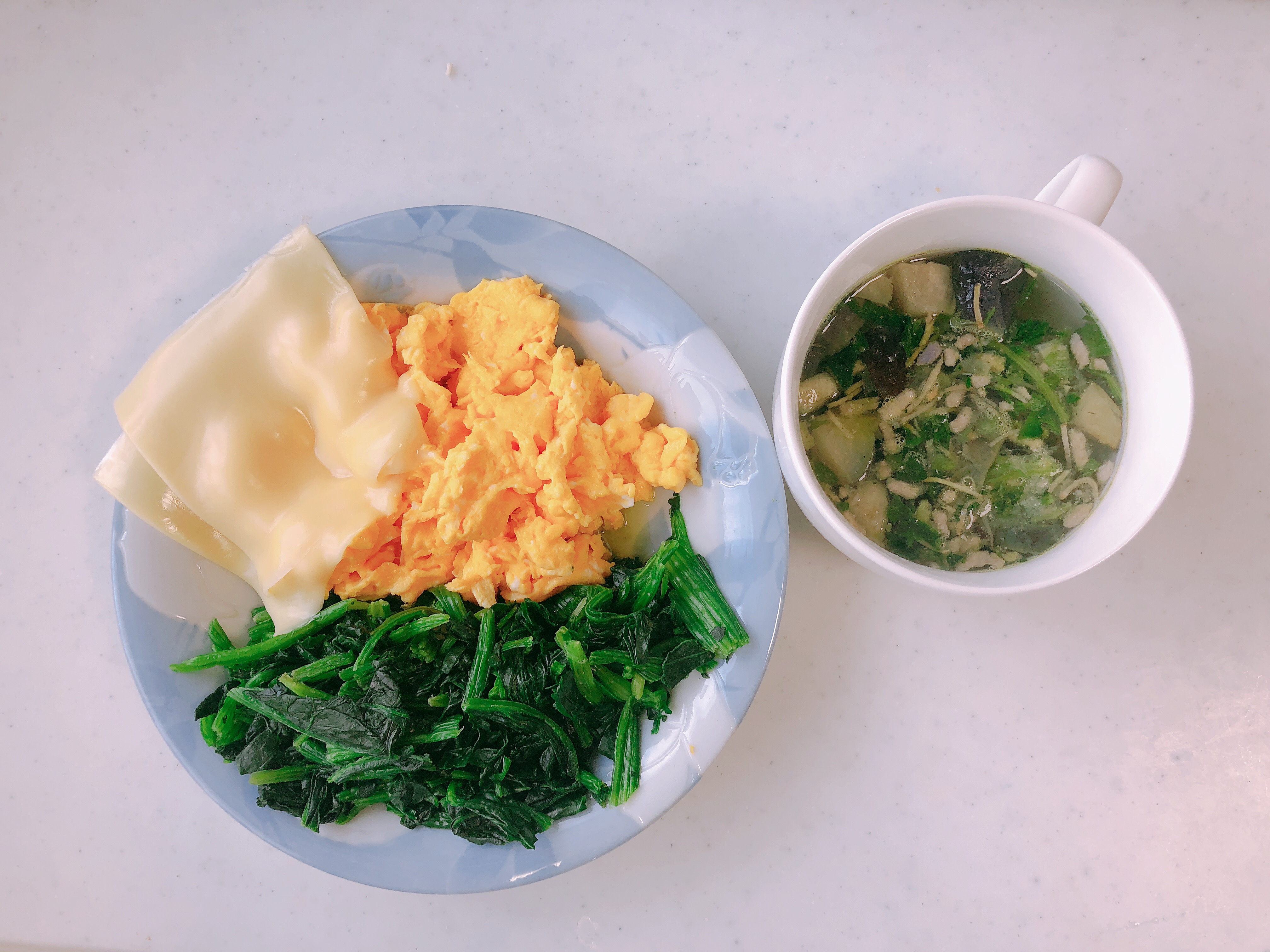 無印良品のスープは美味しくて個人的に結構気に入ってます。それとほうれん草はセブンイレブンの冷凍のほうれん草です。レンジでチンするだけなので重宝します。