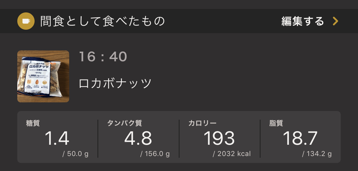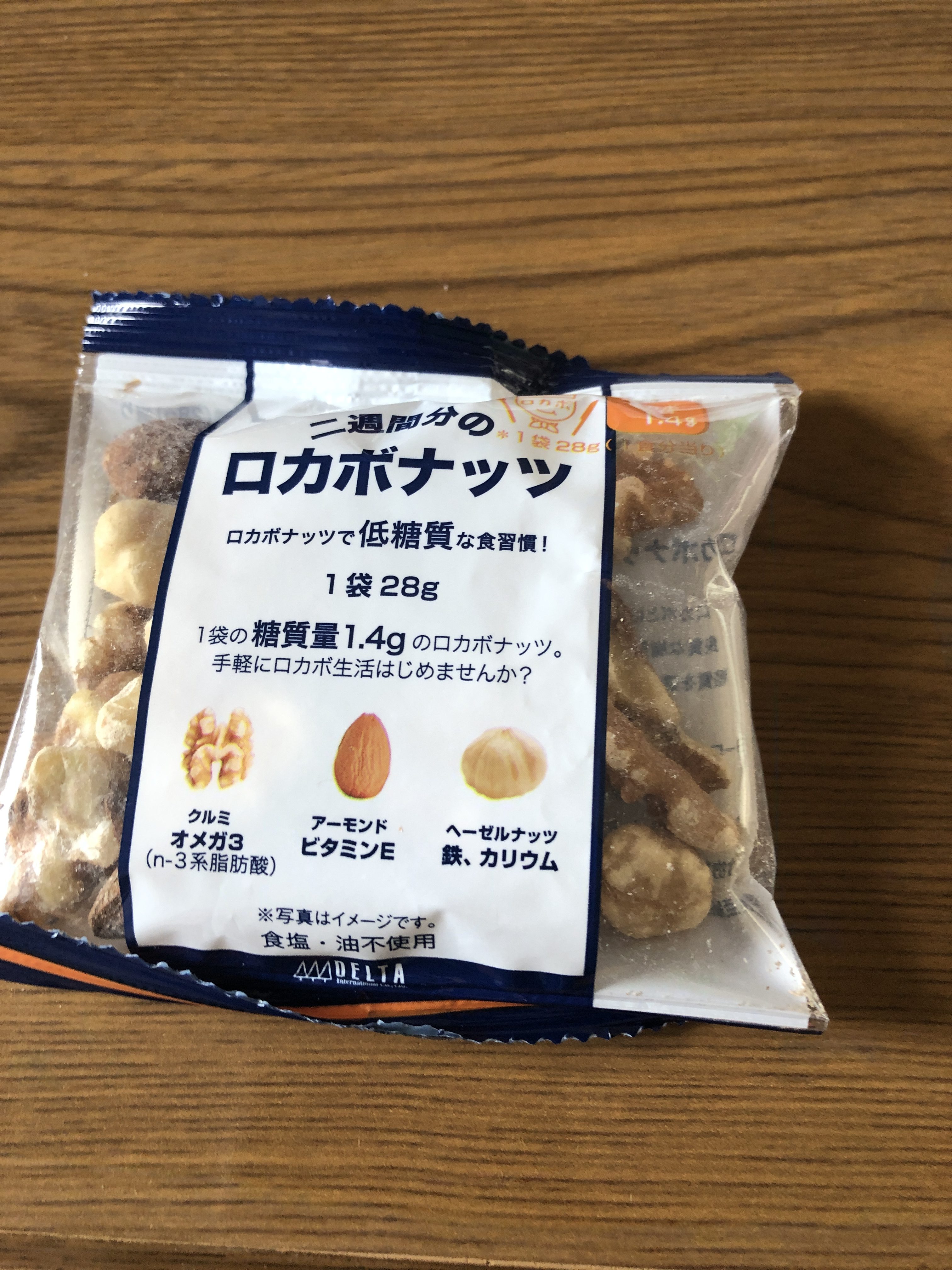 ロカボナッツ!間食これだけ。この日結構バタバタしてて間食食べる時間もあまりなかったんです。