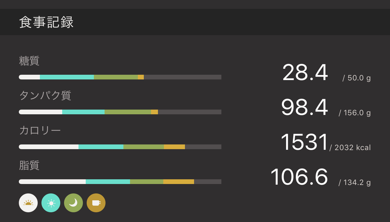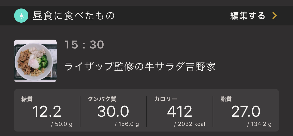 すべて範囲内で収まってます。ライザップ牛サラダが糖質が12gくらいしか無いので、糖質50gの生活でも全然食べられます。ホント、あの牛サラダ便利です。