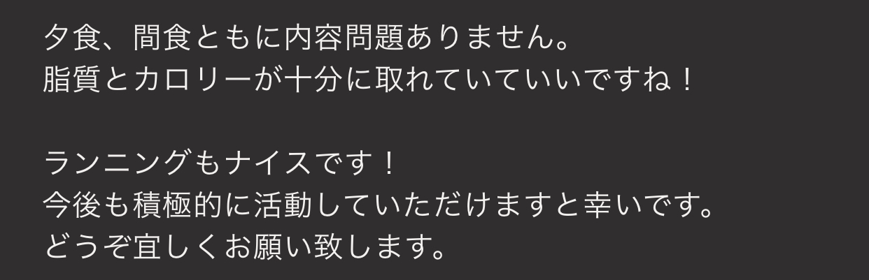 ランニング褒められたの嬉しかった。結構ランニングってきつくて大変なので!