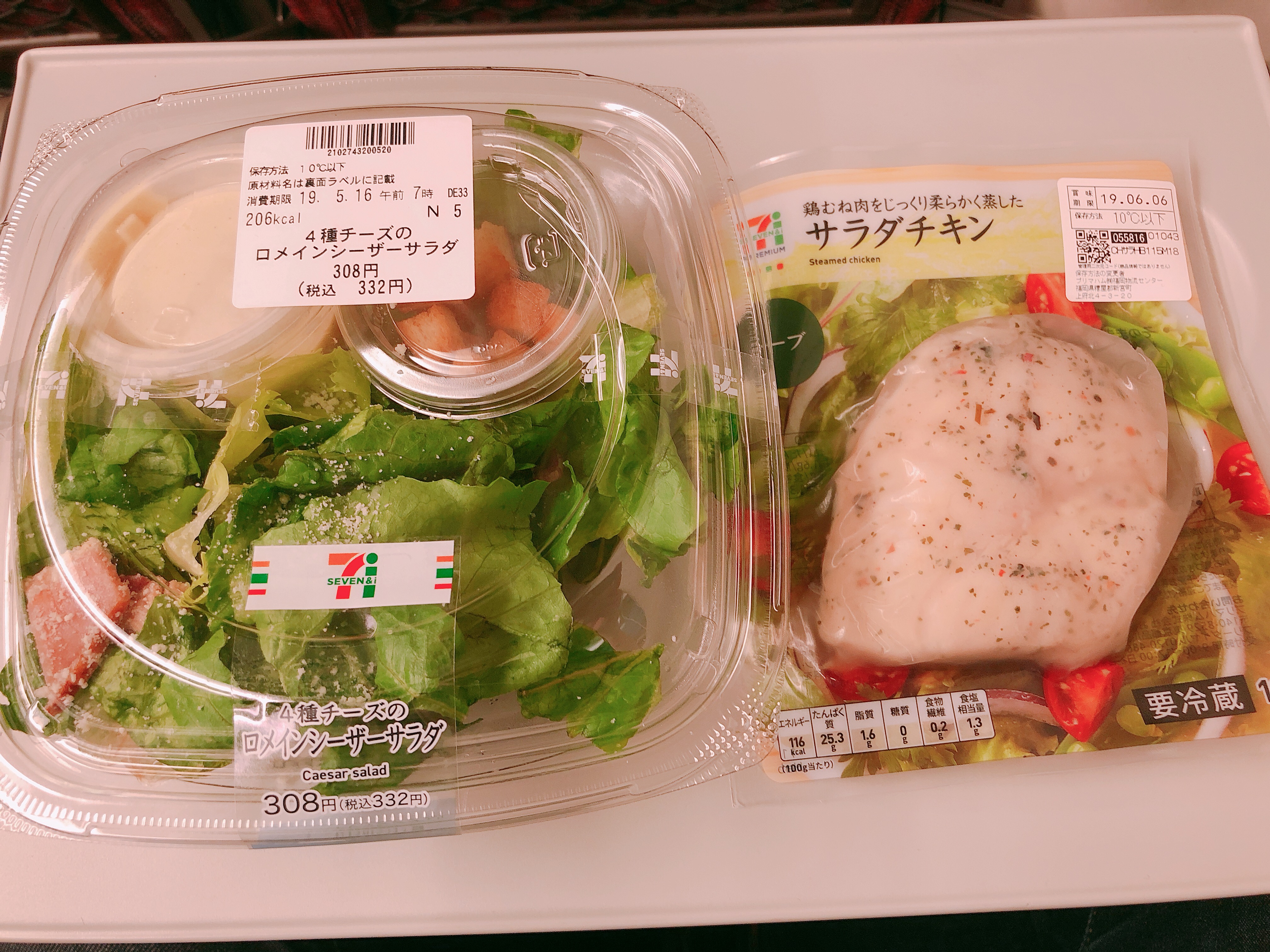 コンビニサラダ+サラダチキンでやっぱりちょうどいい栄養素になります。糖質制限中の方はこの組み合わせが一番簡単で一番ちょうどいい栄養になるかと思います。