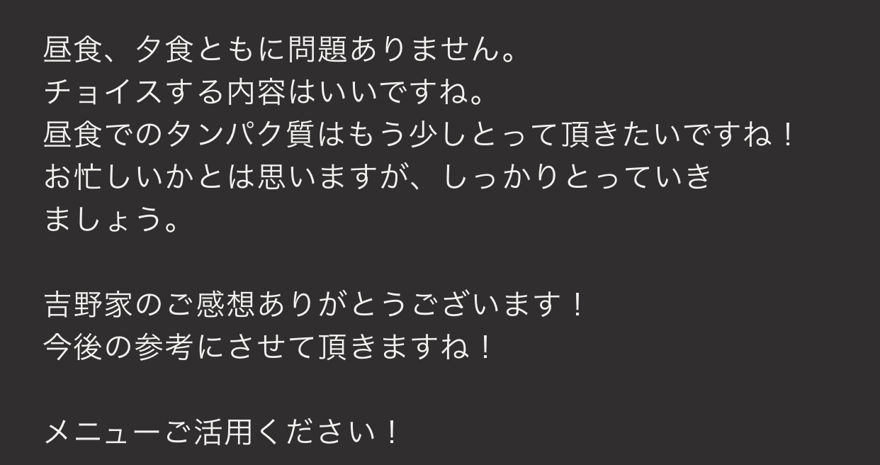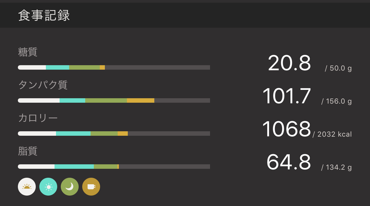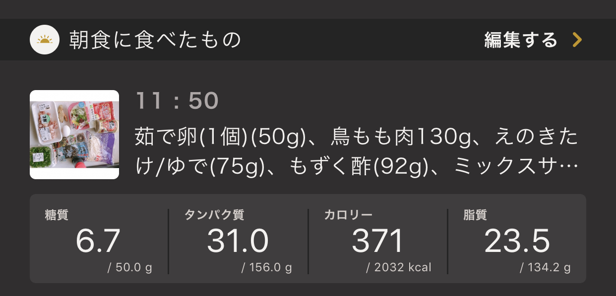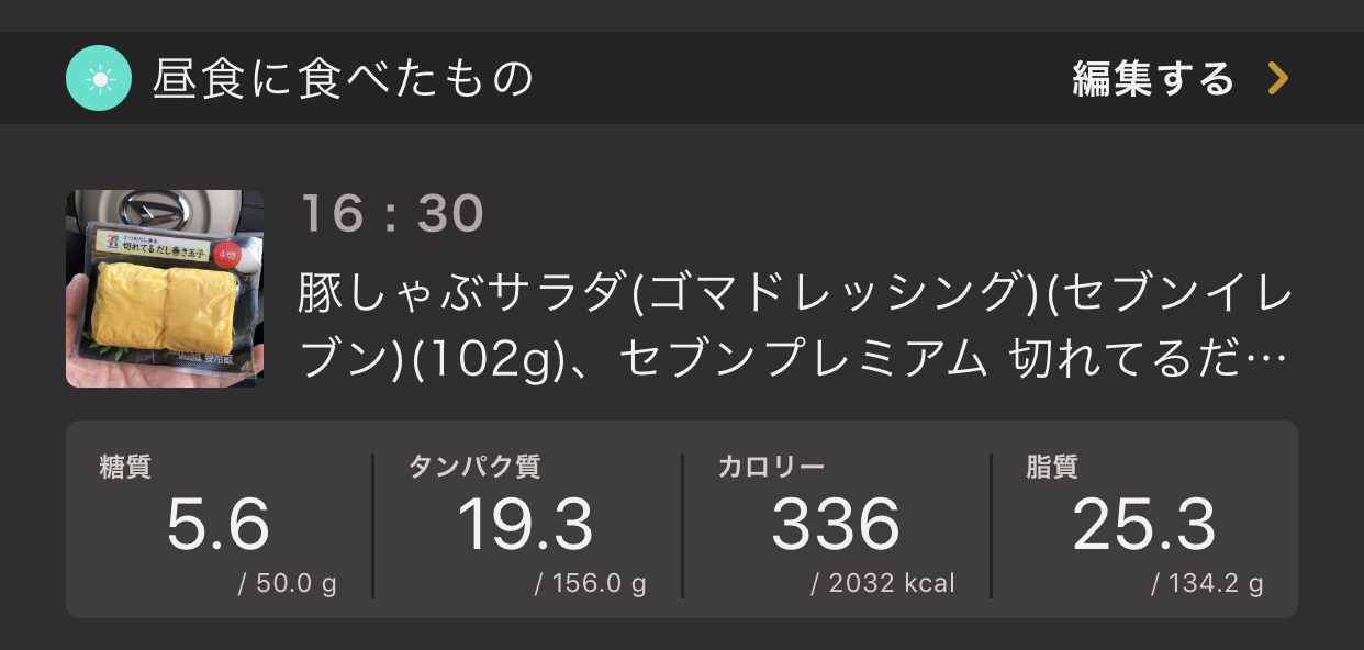 ただ、昼食にしてはタンパク質の量は少なかったかな。という感じですね。