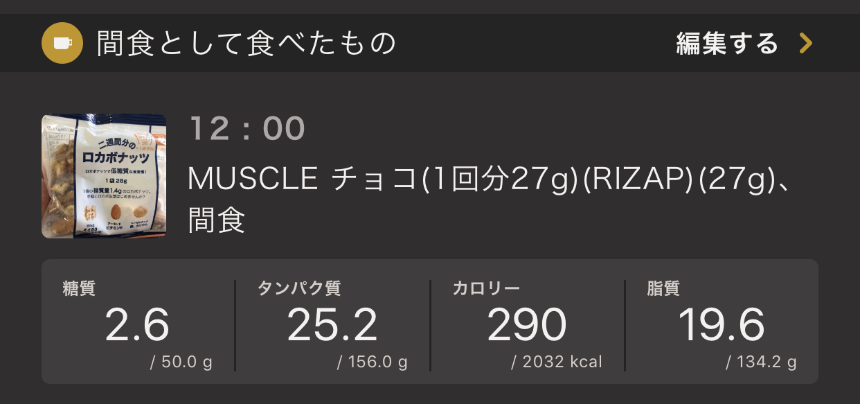 ちなみにこの日もライザップのセッション(トレーニング)でした。なので、しっかりとプロテイン飲みました。そして、僕の中で間食の定番のロカボナッツです。