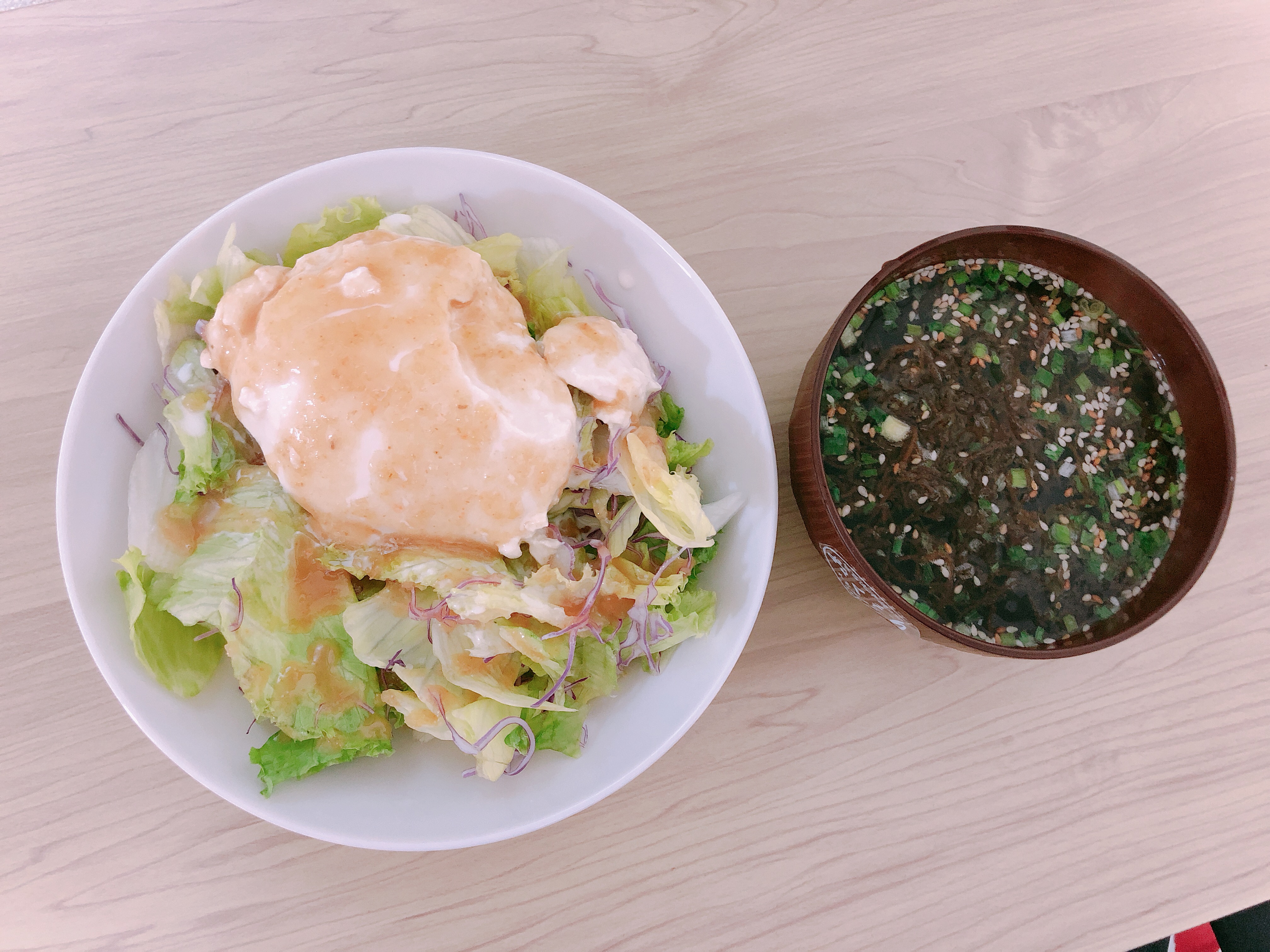 セブンイレブンで売ってた豆腐deサラダというおぼろ豆腐とサラダを一緒に食べられる食品を利用しました。これ、美味しいです。とてもヘルシーなので、オススメです。