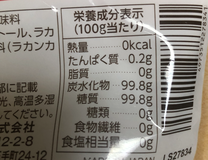 しかし、ラカントのパッケージの栄養成分を見ると糖質がたくさん含まれています。