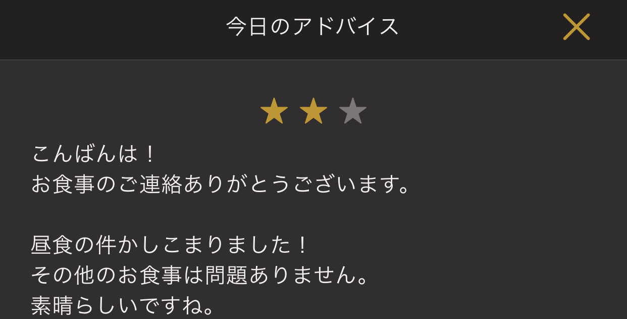 昼食に関してはバタバタしていて食べられなかった。という事情をライザップtouch上で報告していたのでこの様な回答です。