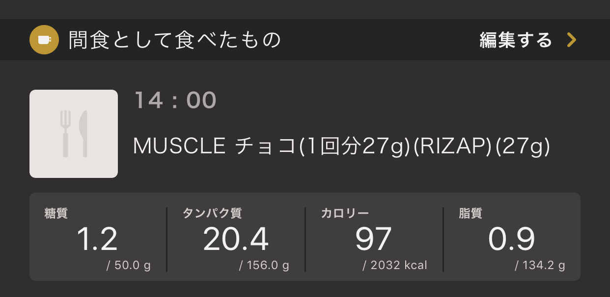 間食はライザップのプロテインのみです。