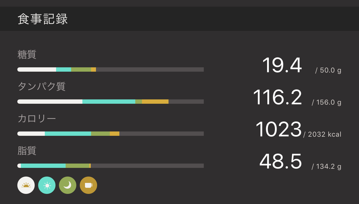 それではここで、この日の総摂取栄養素を見てみましょう。