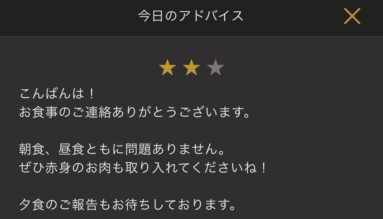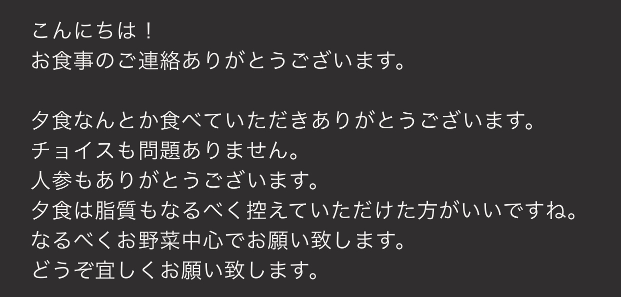夕食に関してはこちらです。夕食に関しては脂質も抑えめが良いそうです。