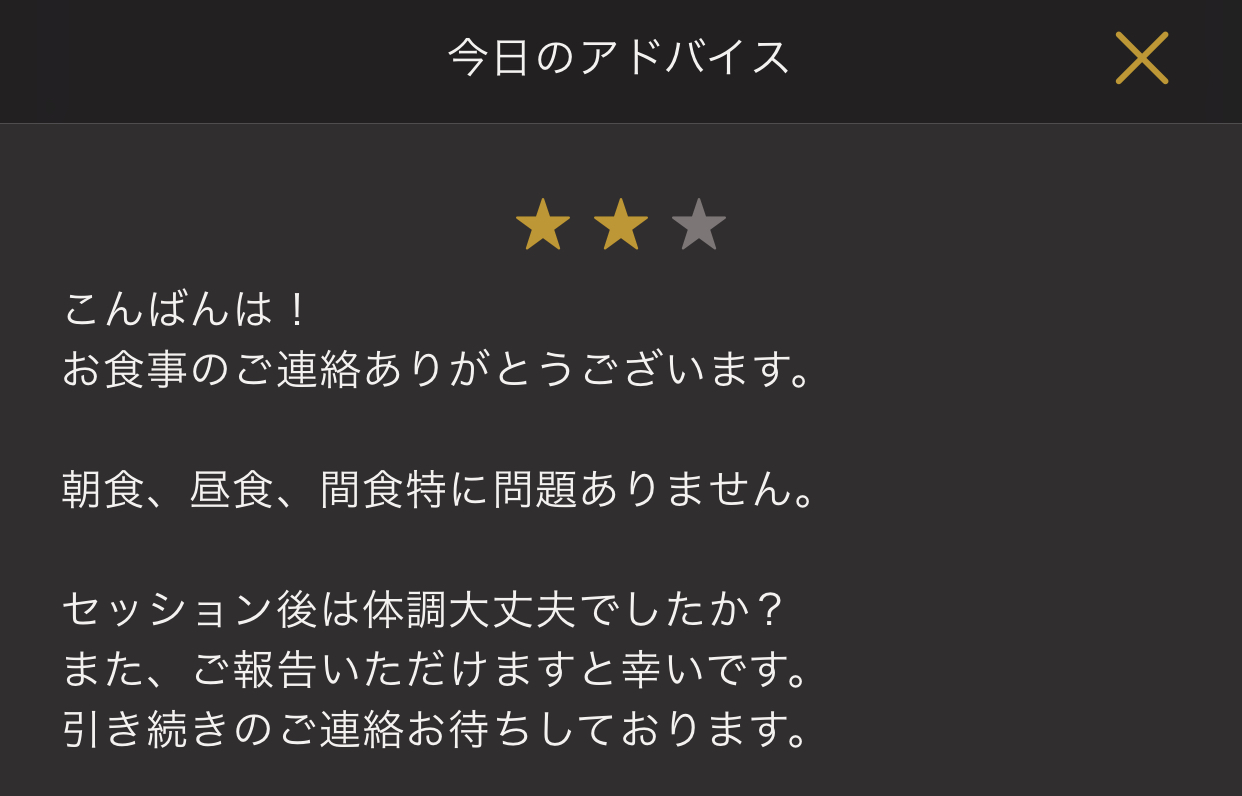 この日の食事に関するトレーナーさんのアドバイスはこちら