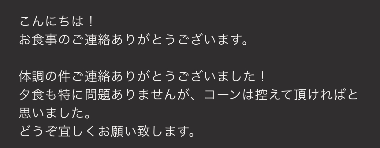 朝食、昼食特に問題なしでした。低血糖のお気遣いありがとうございますm(_ _)m