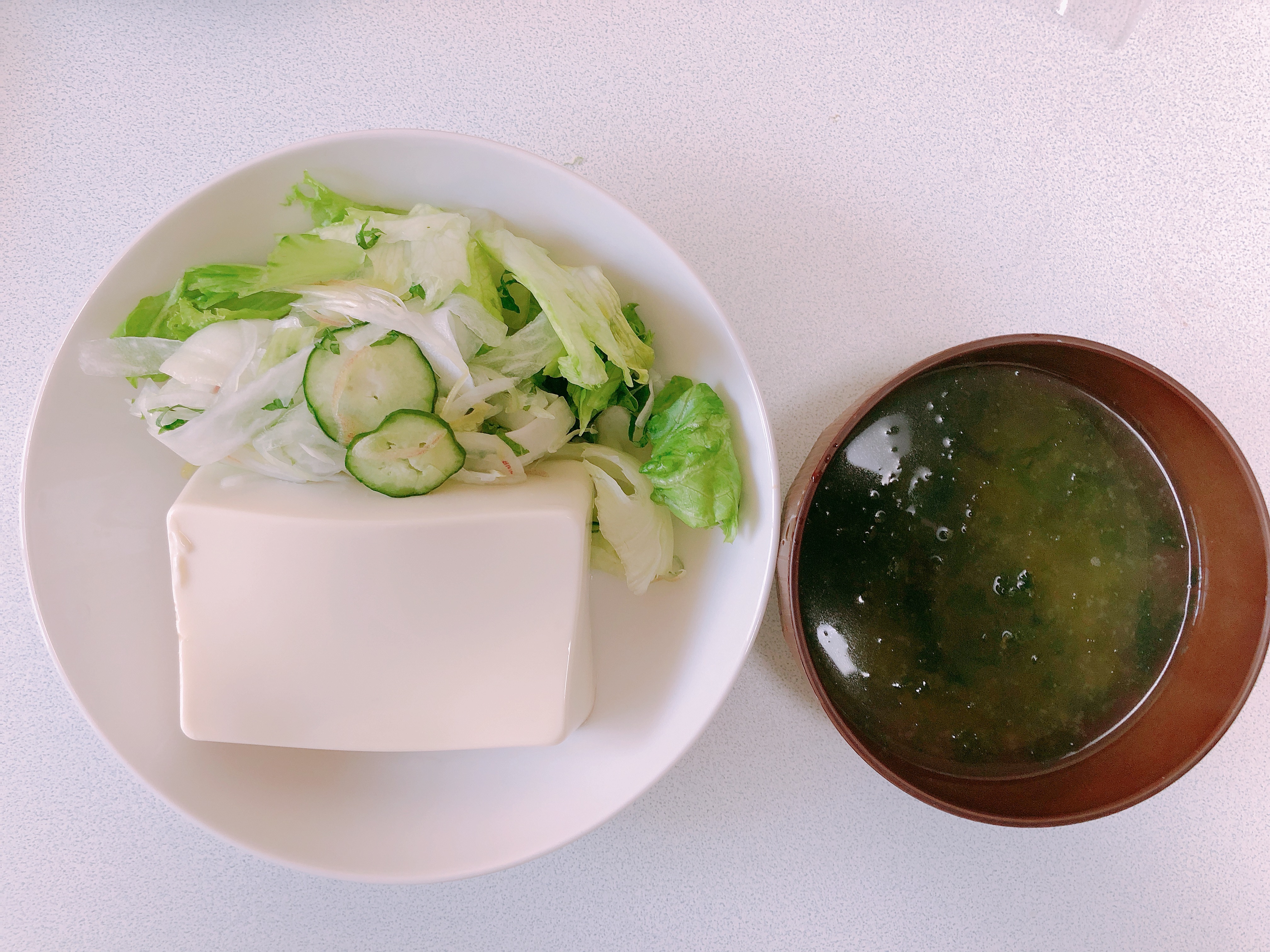 【夕食】冷奴、あおさ味噌汁、サラダ