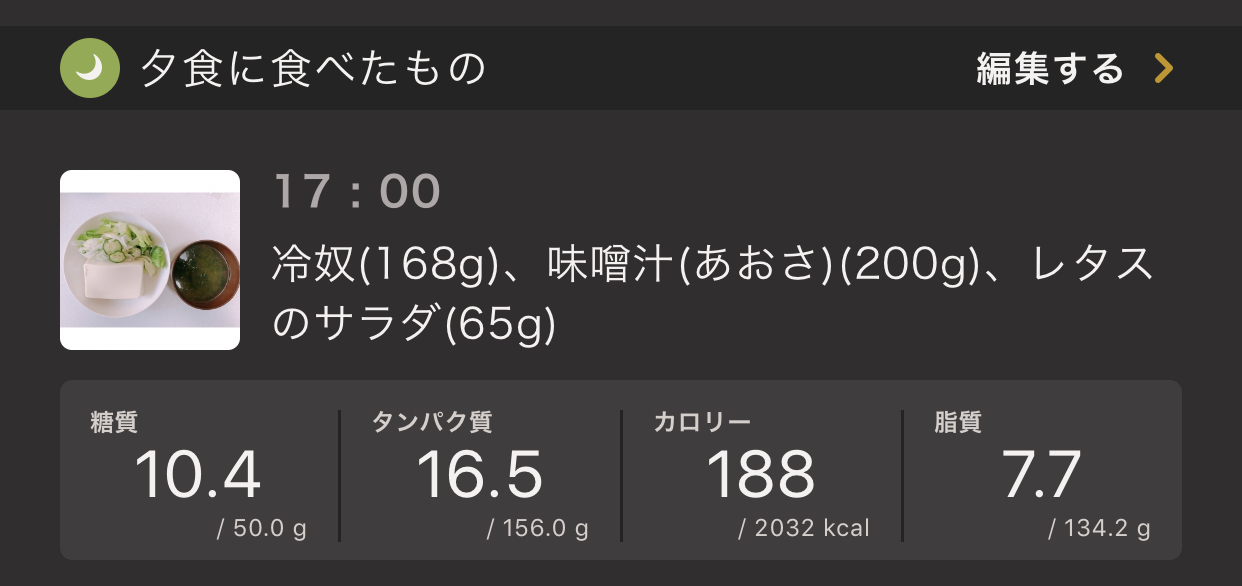プロテインを2杯飲んだので、タンパク質の摂取量が80g行きましたが、1杯多く飲んでなかったら60gくらいでしたね。少ないです。