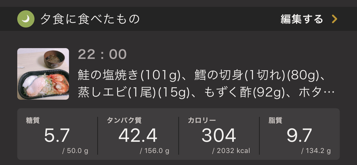 タンパク質が多すぎました。この内容が昼食であれば、問題なかったのですが、夕食は本当に量を抑えた方が良いので、ミスでした。