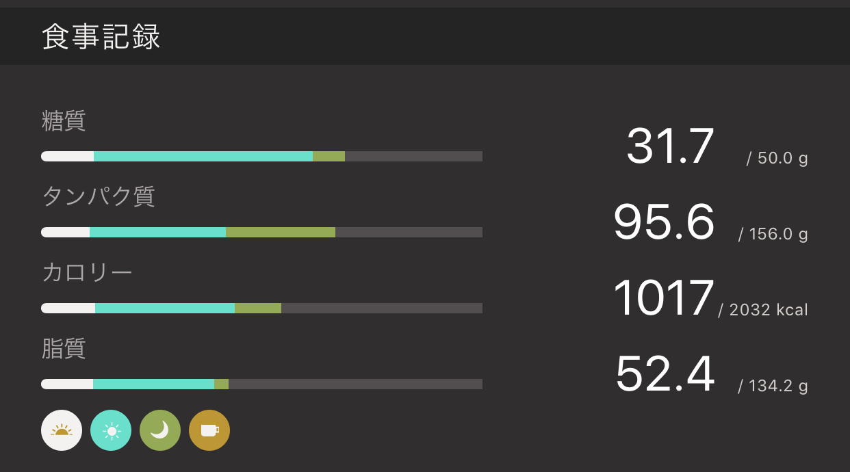 ということで、この日に食べた食事の全ての栄養価はこちら