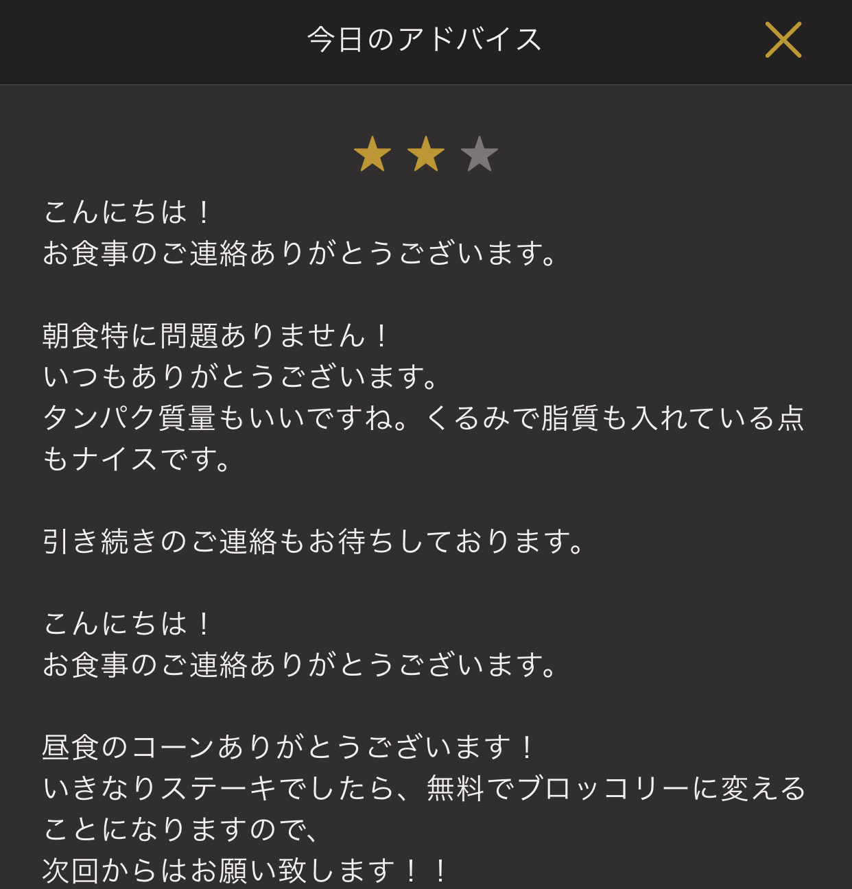 この食事を見てのトレーナーさんのアドバイスはこれ