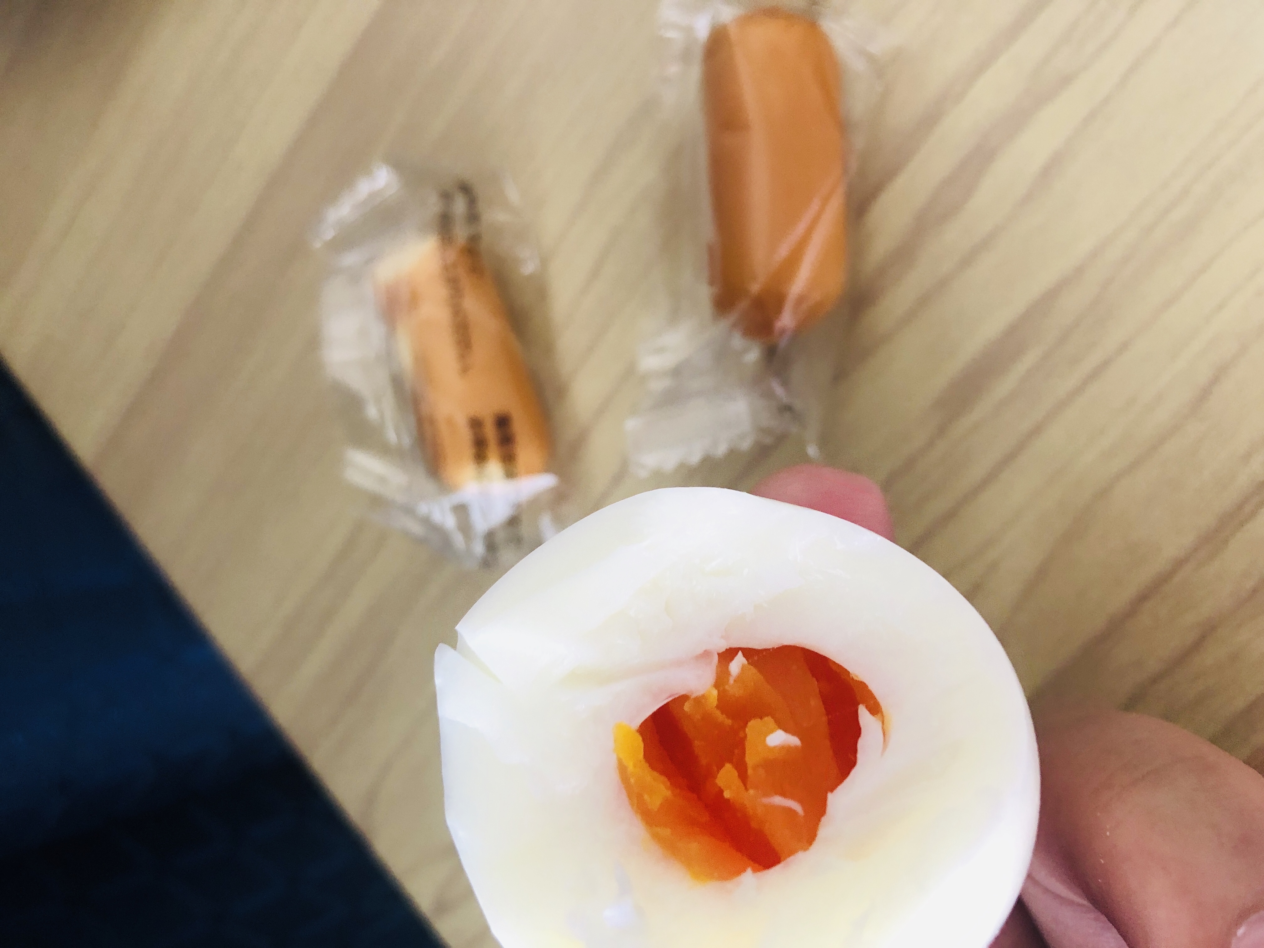 ゆで卵はセブンイレブンのゆで卵です。これが味付きで美味しいんです。