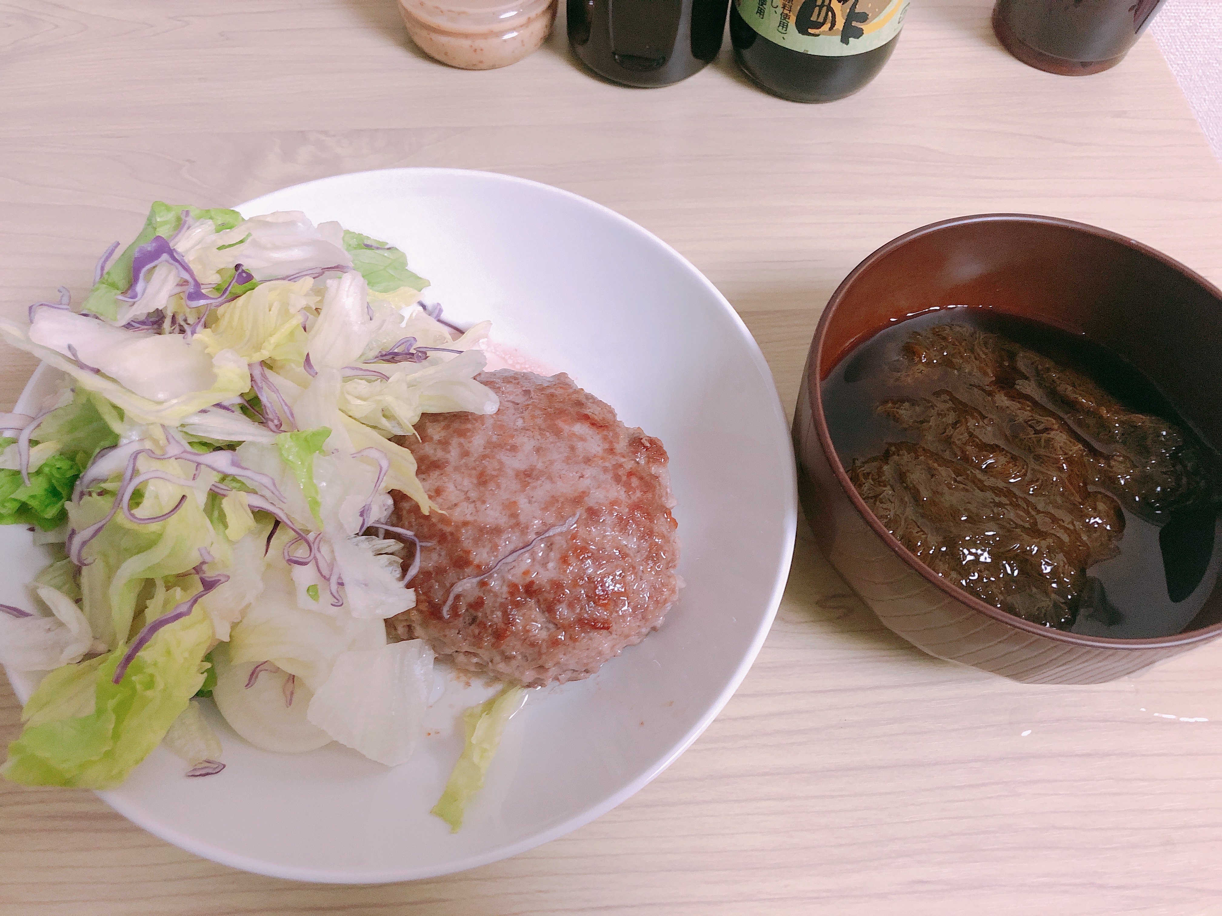 【夕食】合い挽き100%ハンバーグ、もずく酢